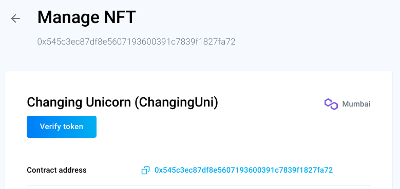 The first function that you will see under Manage NFT is the Verify token button.