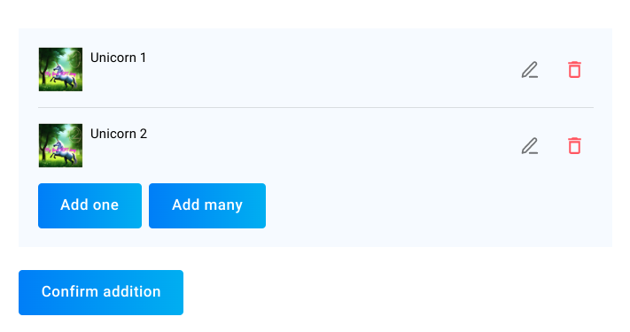 After you click Submit you will have to confirm this action from your wallet. Note that if you add hundreds of line items at once, the whole process is done in batches of several dozen each (the exact number depends on the used blockchain). You will need to confirm each batch from your wallet separately.