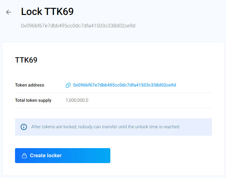 Once you have selected a token, you can proceed to create a locker for it.