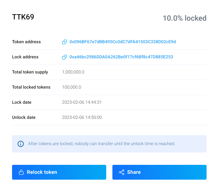 Note that you can also create another token locker for the very same token from scratch in order to lock another batch of tokens (unless of course you already locked *all* tokens that you have control of).